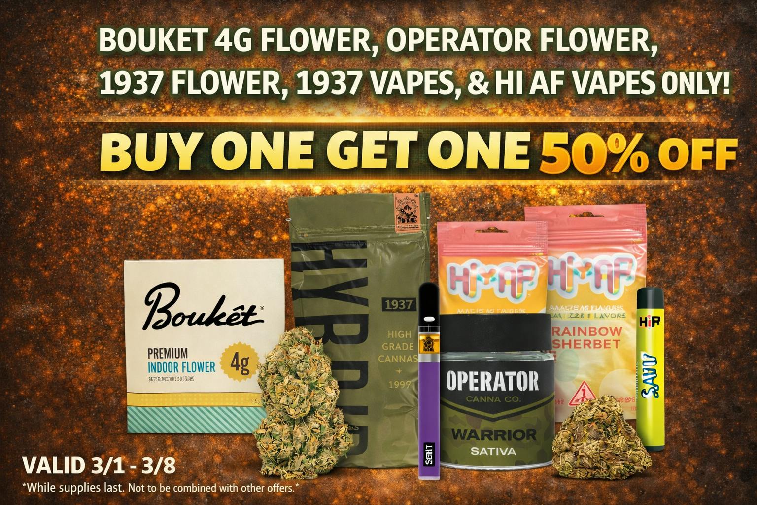 BUY ONE GET ONE 50% MIX AND MATCH ANY PRODUCTS BETWEEN 1937, BOUKET, HI* AF*, AND OPERATOR.